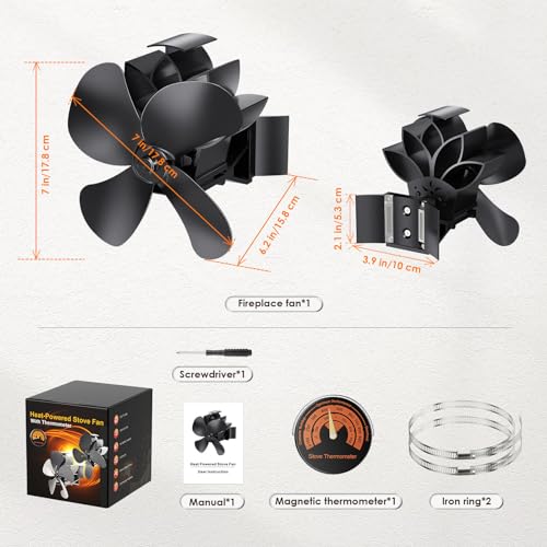 【Temperatura elevata di 350 ℃/662 ° F】Dotato di 2 chip resistenti alle alte temperature, questo ventilatore per caminetto può resistere a temperature da 50°C/122°F a 350°C/662°F. Temperatura ottimale: 150-240°C/302-464°F. Non superare i 350°C/662°F. Inoltre, viene fornito con un termometro magnetico in modo da poter monitorare la temperatura.