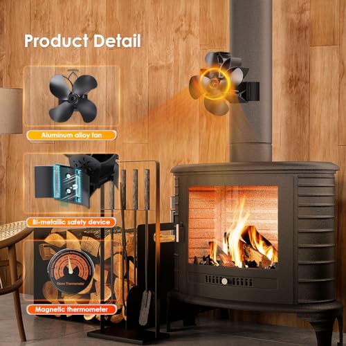 Do-Electr Magnetico Ventilatore per Stufa a Legna 4 Pale, Silenzioso Ventilatore per Camino con Termometro, per Bruciatore di Tronchi/Stufa/Camino/Alimentato a Caldo