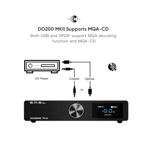 【SMSL DO200MKII decodifica completa MQA】 L'ingresso USB/OPT/COAXIAL/ AES del DO200 MKII supporta la funzione di decodifica MQA e supporta MQA-CD. Tutte le porte di ingresso supportano DSD (tranne BT), Coassiale, OPT e AES supportano DOP64.