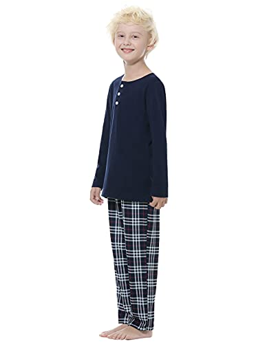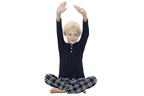 Doaraha Pigiama Bambino Pigiama Ragazzo Maniche Lunga Due Pezzi Bambini Pigiama Cotone 6-15 Anni Pyjama Sets Vestiti Bambino Invernale Impostato per Ragazzi A-Marina Militare 120cm