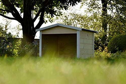 Dobar 56198e maehroboter di garage in legno, prato del robot Carport, 87 x 80 x 70 cm, colore: naturale/bianco/antracite, Beige/Naturale/Bianco/Antracite
