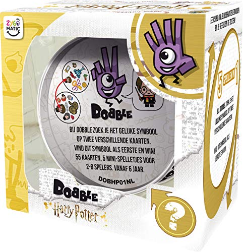 Dobble Harry Potter, un"aggiunta magica alla serie Dobble esistente! In questo gioco di carte veloce, i giocatori cercano contemporaneamente 1 simbolo Harry Potter uguale su due carte diverse.