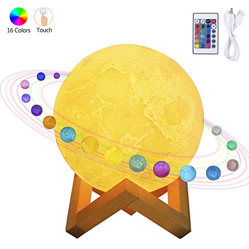 DOBON 3D Lampada Luna Appeso, 16 Colori LED Luce Lunare Notturna con Telecomando & Controllo Tattile, Ricarica USB, Decorazioni per Camera da Letto 14cm