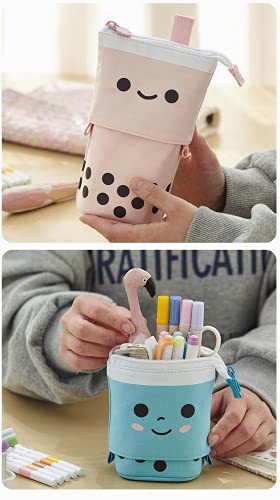DOBRE Portapenne pop-up per ufficio, porta penne stand up carino Bubble Tea telescopico astuccio per matite da ufficio, Kawai portatile, scatola per trucco (rosa)