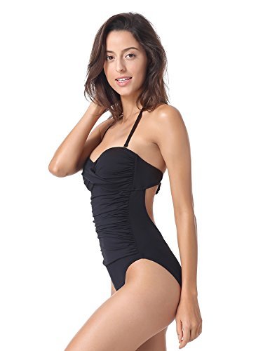 Dobreva Donna Costume da Bagno a Fascia Allacciatura al Collo Nero 44
