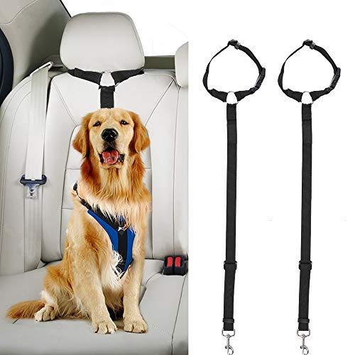 Docamor Cane Cintura di Sicurezza Cablaggio per Cani Cintura di Sicurezza per Auto per Animali Domestici Guinzaglio Regolabile(18-30 Pollici) Materiale in Tessuto di Nylon 2 Pack (Nero)