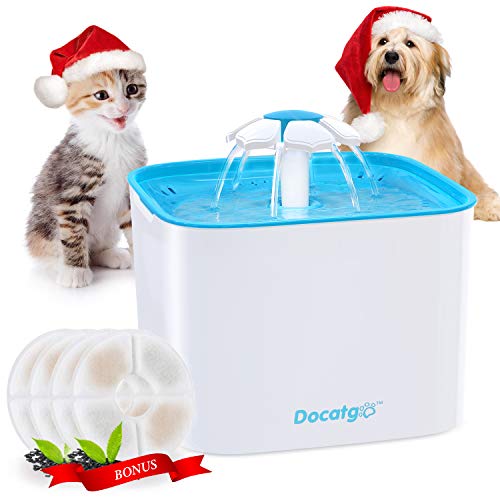 Docatgo Fontana per Gatti Erogatore Automatico di Acqua Ultra-silenziosa per Cani Fontanella con capacità d'Acqua di 2 Litri e Filtro a Tre Strati, 4 Elementi Filtranti, Bianco e Azzurro