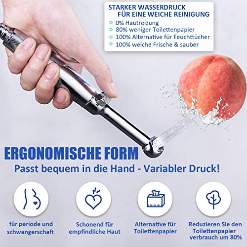 STAMPA REGOLABILE: con lo spruzzatore per bidet non è necessario premere costantemente il pulsante. Una volta portato nella posizione corretta, lo spray per bidet ha sempre la giusta pressione. In questo modo le mani sono libere per concentrarsi sulla pulizia. Può essere regolato in modo che sia adatto anche per neonati e animali domestici e può essere pulito con alta pressione