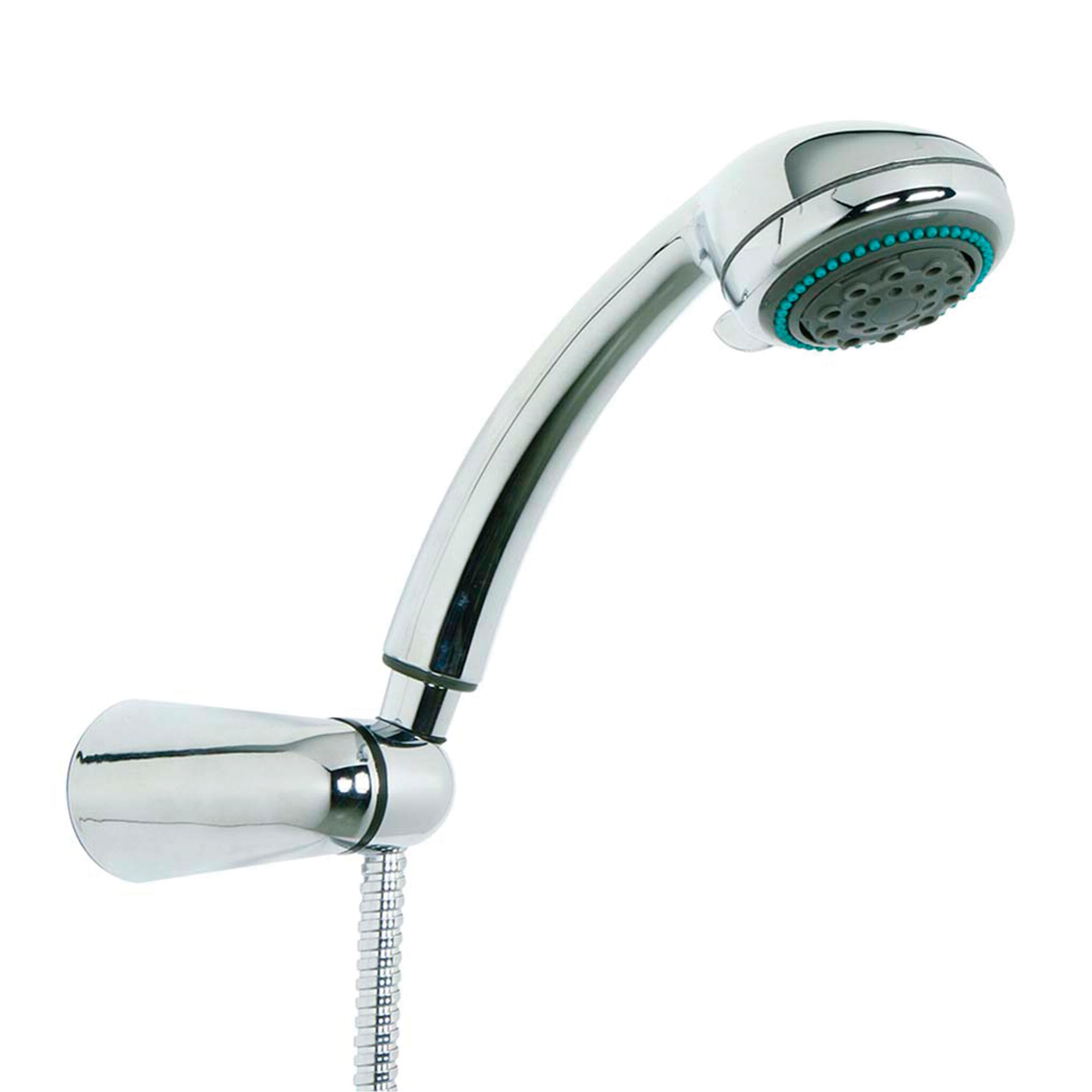 Duplex Diesis, doccetta ABS cromato, 5 getti, anticalcare, diametro 80 mm, supporto a parete fisso, flessibile in metallo cromato doppia agraffatura 150 cm, attacco universale da 1/2”. supporto doccetta a parete. flessibile doppia aggraffatura. doccetta 5 getti