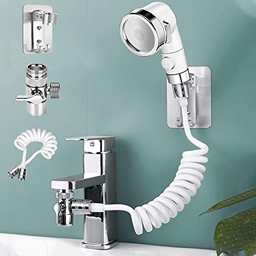 Doccetta per lavandino,Set soffione doccia per lavandino, Multifunzione Doccetta per Lavandino,con Tubo Telescopico,per Lavare i Capelli o Pulire il Lavandino(rubinetto non incluso)