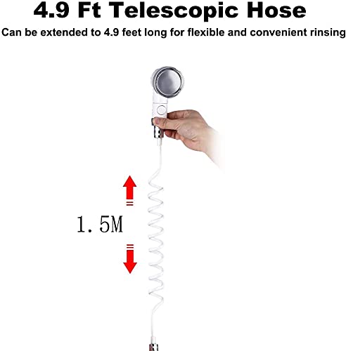 [Design umanizzato]: il tubo telescopico in PU a molla può essere regolato nella posizione più comoda in base alle proprie esigenze. La lunghezza del tubo è di 1,5 m, che è una piacevole esperienza della tua vita. È adatto a quasi tutti i rubinetti, bidet o soffioni doccia