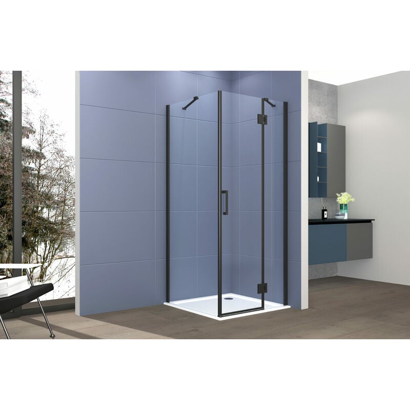 Box battente profilo NERO Box doccia 2 lati: fisso + porta un battente altezza 200cm cristallo 6mm profilo NERO - PIPPO Il box doccia a due lati è quello spazio all'interno del nostro ambiente bagno delineato da due parti in cristallo trasparente temperato e profili in alluminio nero. I cristalli da 6mm, sono trattati con sistema protettivo nano-tecnologico conferendo alla superficie ottime proprietà antisporco;