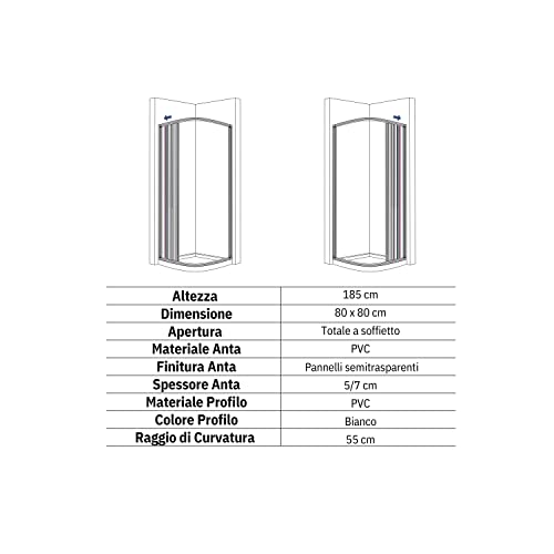 Box Doccia in PVC 80x80 cm semicircolare a due lati con apertura laterale Roma