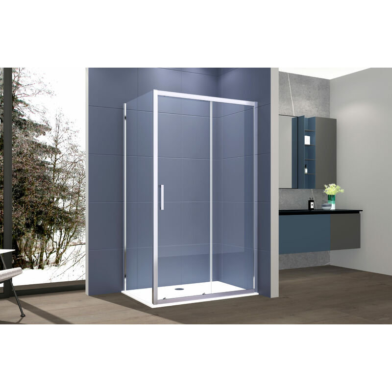 i profili lineari e di design rendono l'ambiente bagno elegante e moderno. I box doccia 2 lati, in altezza 195 cm, sono reversibili ed hanno diverse possibilità di realizzazione sviluppato per tutte le esigenze. Caratteristiche tecniche porta: porta doccia scorrevole laterale cristallo temperato 6 mm altezza 195 cm profilo in alluminio anodizzato 1.2 mm chiusura magnetica sistema di scorrimento in acciaio inox sgancio rapido per la pulizia regolazione -4 + 1 cm Caratteristiche tecniche lato fisso: lato fisso cristallo temperato 6 mm altezza 195 cm no profilo superiore e inferiore regolazione 2.5 cm Come