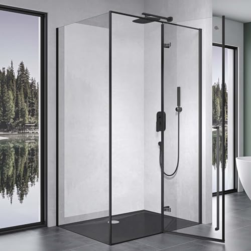 Mai & Mai Box Doccia 90x120cm con 4cm Piatto Doccia, Altezza: 195cm, Cabina Bagno in Cristallo Trasparente 6mm Box Cabina Doccia Angolare Ravenna64K, Nero