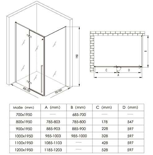 ACCESSORI DI ALTA QUALITA: Le cerniere in acciaio inox di alta qualità assicurano che la porta della doccia si apra e si chiuda senza problemi. I profili di fissaggio sono realizzati in ottone e garantiscono la stabilità dell'intero di box doccia.