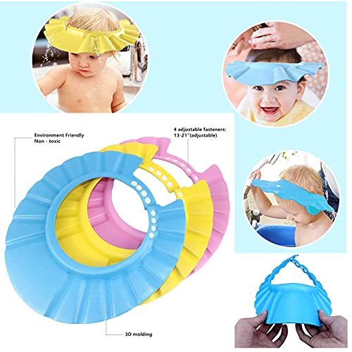 3pcs Doccia Cap per Bambino,Cappello Doccia Bambini Cuffia da Bagno per la Testa del Bambino Regolabile,per la Testa del Bambino Regolabile, Proteggi Occhi, Bocca, Orecchie