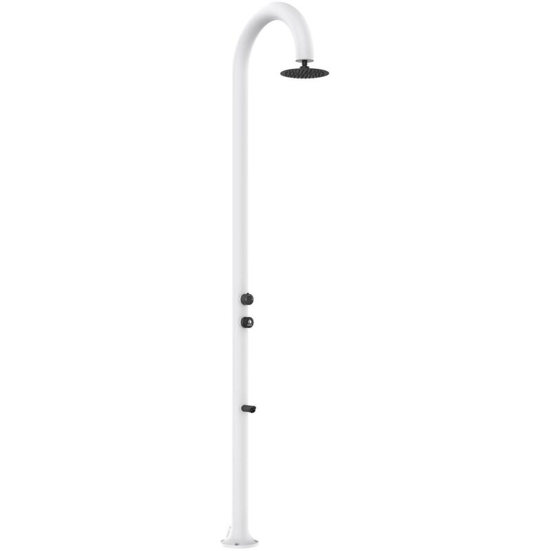 Sined luna timer p bianca doccia in alluminio acqua fredda temporizzata lavapiedi soffione bianca cm 233x17x17La doccia bianca temporizzata con lavapiedi LUNA-TIMER-P-BIANCA di SINED è l'ideale per chi cerca un equilibrio tra estetica e funzionalità, offrendo una soluzione elegante e pratica sia per gli interni che per gli spazi esterni. Questa doccia, realizzata in alluminio bianco e dotata di temporizzatore, è perfetta per aggiungere un tocco di raffinatezza al tuo giardino o per completare l'arredo del bagno di casa con un elemento funzionale e di stile. Con un design sofisticato e minimalista, la doccia temporizzata con lavapiedi si distingue per le sue linee pulite e per la qualità dei materiali impiegati, tra cui l'acciaio inox 304 per il soffione e l'ottone cromato per i rubinetti, che garantiscono durata e resistenza nel tempo. La doppia possibilità di allacciamento dell'acqua, sia inferiore che laterale, insieme al pratico lavapiedi, rende questa doccia estremamente versatile