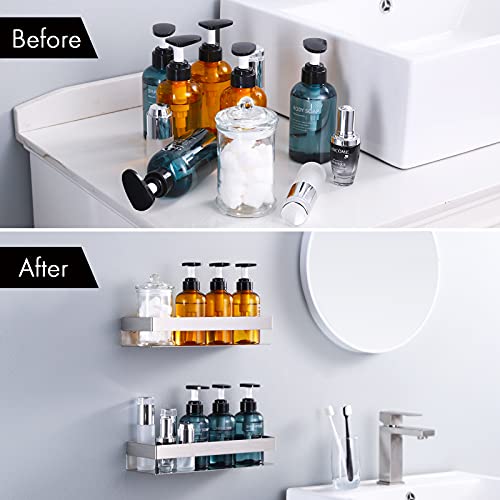 KES Doccia Caddy Bagno 2 Pezzi Mensola A Parete Piccola Doccia Mensola SUS304 In Acciaio Inox Bagno Cesto Storage Organizer 30CM Acciaio Spazzolato, BSC205S30A-2-P2
