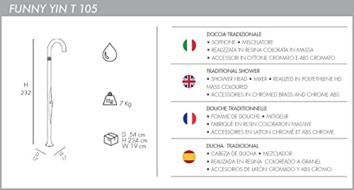Doccia Classica a doppio ingresso acqua calda e fredda Arkema Funny Yin in Poletilene HD Doccia per interno e esterno con Miscelatore ARKEMA T105 9003 Bianco