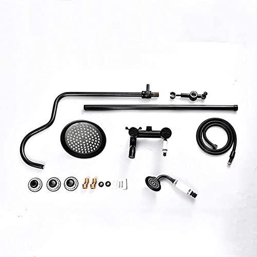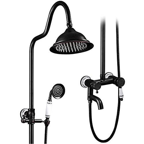 New Set Asta Doccia, Doccia Colonna A Parete Nero Retro Bronzi,Retro Doccia Set Sistema Include Soffione Doccia A Mano Regolabile Rubinetto Vasca Da Bagno,Schwarz