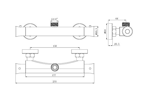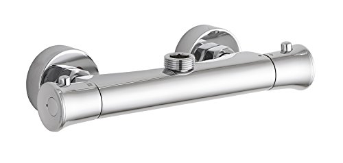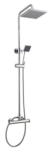 Kit doccia: controllo duale quadrato termostatico e soffione con barra per doccia e miscelatore con valvola - cromato con kit di montaggio