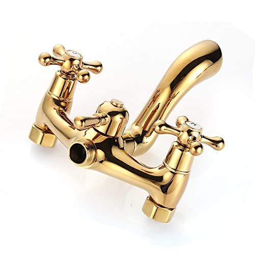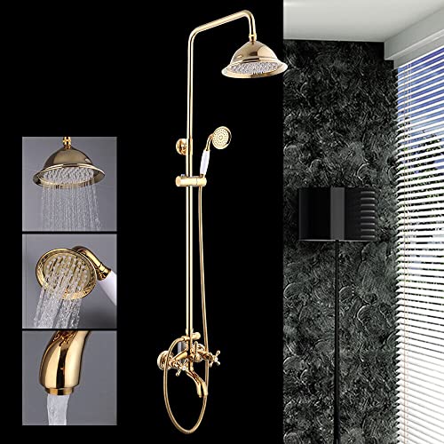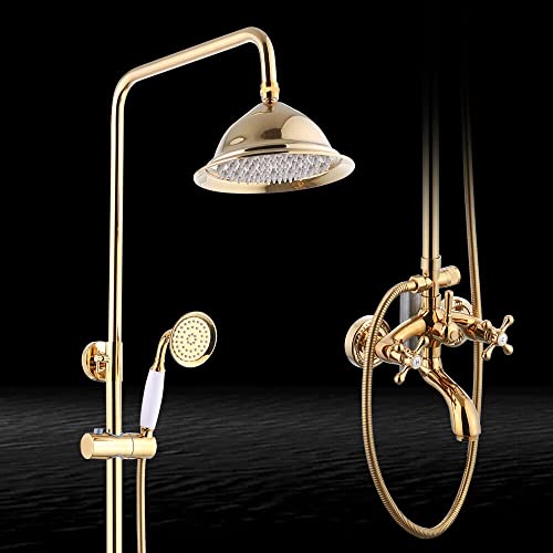 Set doccia con doccetta dorata, supporto per doccia, braccio doccia, soffione per doccia, soffione per bagno, stile nostalgico, retrò, in ottone