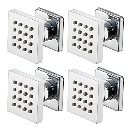 JMXD Doccia A Getto Spruzzatore Laterale a Parete Regolabile Doccia Corpo Getto Sparyer Massaggio Spa Ottone 2 Pollici Piazza Rettangolo Laterale Soffione Doccia Spruzzatore, Cromo,4 PCS