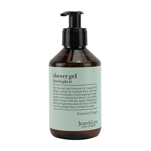 Il gel doccia idratante Jean e Len al rosmarino e zenzero deterge e cura la pelle durante il lavaggio e garantisce un'esperienza di doccia rivitalizzante - prodotto con amore in Germania