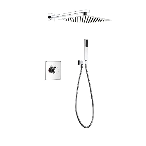 Set Doccia da Incasso Completo Miscelatore a Pioggia Sistema Doccia a Parete 10 in Quadrato in Acciaio Inox Miscelatore da Bagno a Parete-Chrome-A