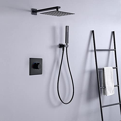 Compreso: soffione quadrato da 10 pollici (acciaio inossidabile), doccia a mano (ottone), staffa doccia (ottone), rubinetto doccia (ottone), tubo da doccia da 1,5 m (tubo doccia da 1,5 m (304 acciaio inossidabile)