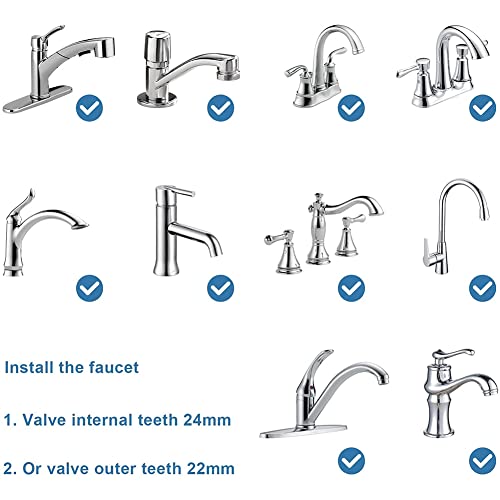 ✔️️Elevata adattabilità: si prega di controllare le dimensioni del rubinetto prima dell'acquisto. Questo kit è adatto per rubinetti con un diametro da 16 a 22 mm e rubinetti con un diametro della filettatura interna di 23,5 mm ed è adatto per la maggior parte dei rubinetti. Non devi preoccuparti di perdite d'acqua, ma non è adatto per rubinetti quadrati e altri rubinetti irregolari.