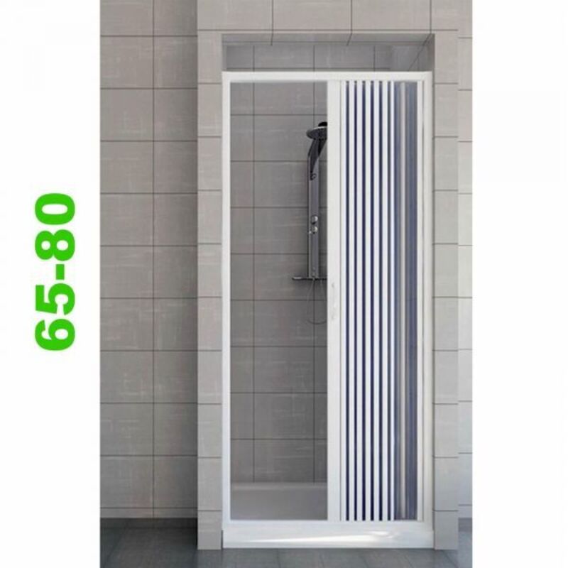 Box doccia a soffietto modello a nicchia con apertura laterale reversibile,riducibile nelle misure indicate. Struttura in PVC di colore bianco. Altezza 185cm, pannelli in PVC monoparete. N.B. i cuscinetti di scorrimento sono posti lateralmente.(DianFlex)
