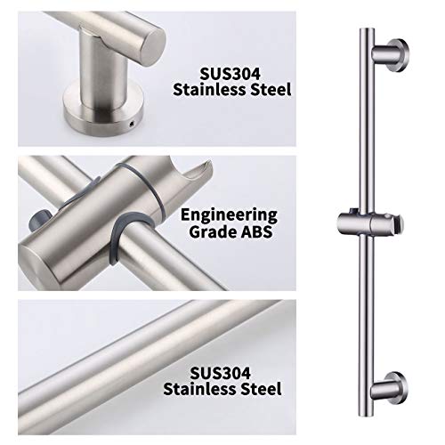 Antiruggine: l'asta della doccia a mano è realizzata in acciaio inossidabile SUS304 di alta qualità, interamente in metallo per una maggiore durata e durezza per resistere a graffi e scolorimento quotidiani. Questa asta doccia non si piega né si ammacca nell'uso quotidiano.