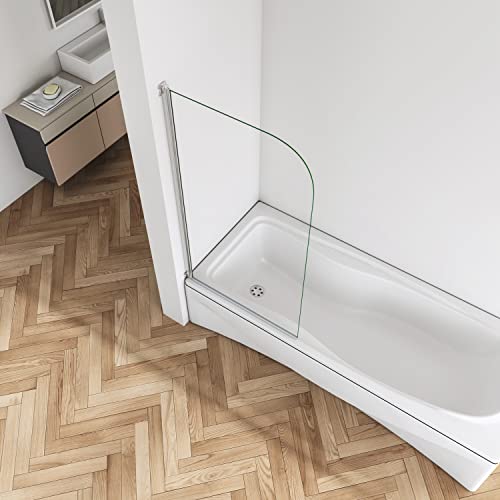 Box Doccia Parete per Vasca 70 cm H.130 cm Anta Arrotondata in Vetro Trasparente di Spessore 5 mm Profilo Cromato Brillante