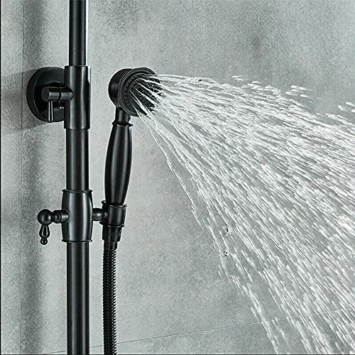 Set doccia a pioggia, in acciaio inox, con colonna doccia a pioggia, con soffione e asta per doccia, colore nero opaco, set doccia (nero)