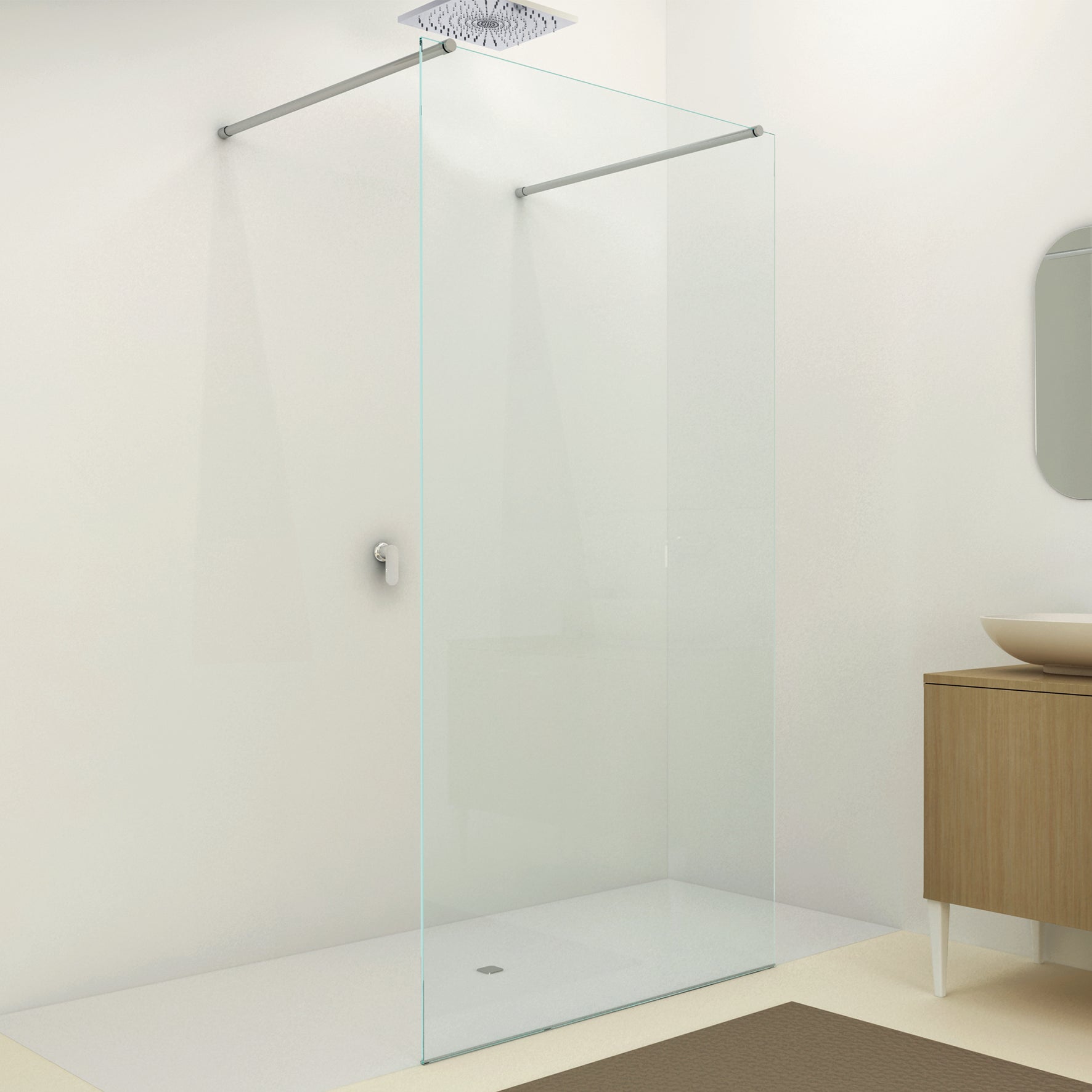 Vetro temprato. Installazione centro stanza.. Indicato per ingombri di almeno 150 cm.. Facilità di accesso. Il trattamento anticalcare riduce il deposito di calcare sulle pareti e dona brillantezza più a lungo