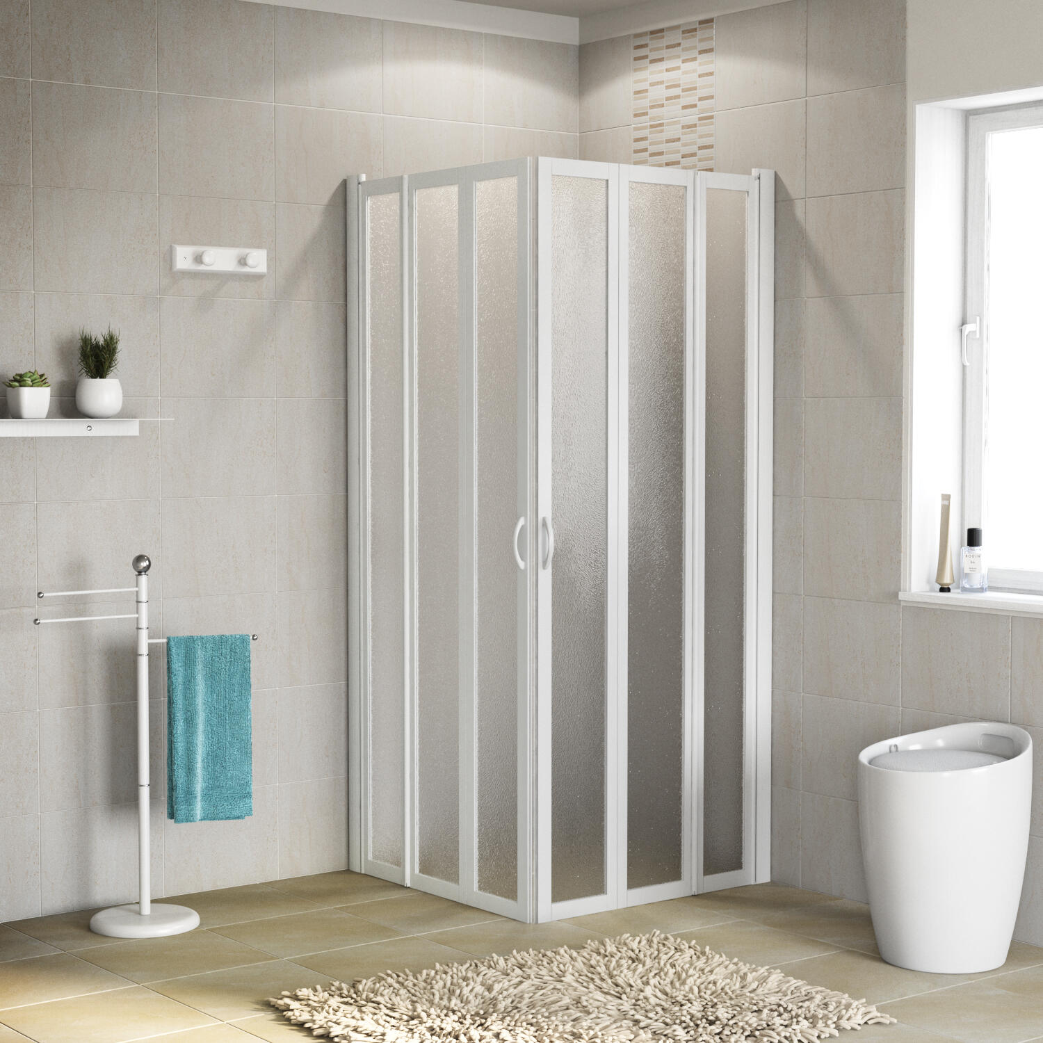 Apertura pieghevole. Indicato per piatti doccia da 70 x 70 cm