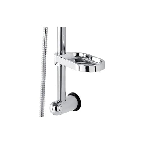 Kit Asta Doccia Saliscendi regolabile 70cm con soffione 5 getti di acqua multifunzione, con tubo e portasapone, in ABS cromato, colonna per vasca da bagno