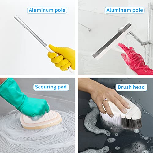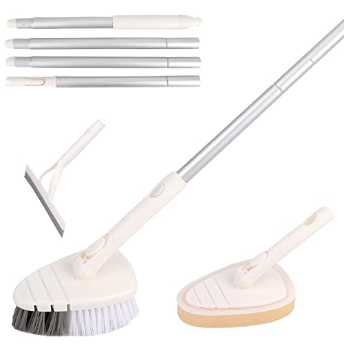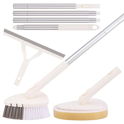 Doccia Scrubber Cleaning Brush Combo, vasca e piastrelle Scrubber Cleaner, spazzola, spazzola di spugna, doccia finestra Squeegee pavimento Scrubber Squeegee, 3 in 1 con manico lungo estensibile