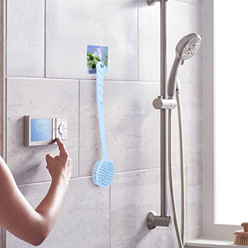 Doccia Spazzola Manico Lungo Bath Brush Silicone con Setole Morbide per Donne Uomini Porta Un Gancio da Parete Spazzola per Il Corpo da Doccia con Manico Lungo, Ipoallergenica, Ecologica (Blu)