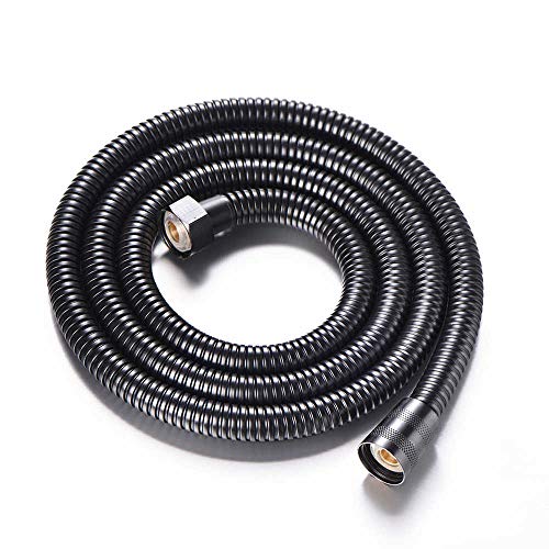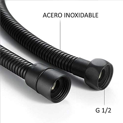 Tubo flessibile in acciaio inox da 150 cm, finitura nera opaca. Spruzzatore rotondo in ABS anticalcare nero opaco diametro 225 mm.