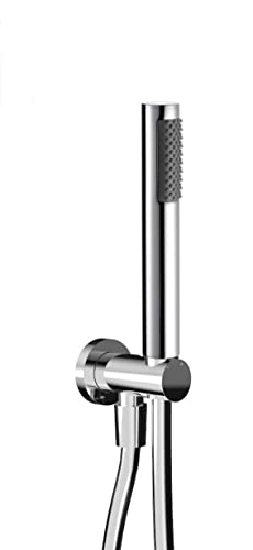 Kit doccia tonda con doccetta minimale cilindrica in ottone cromato, flessibile e presa acqua