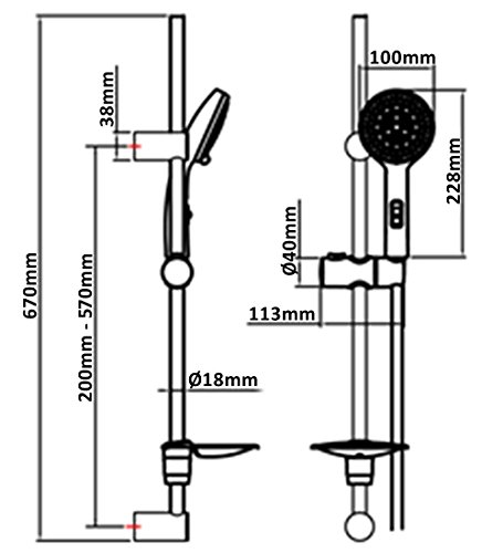 Il set doccia ha una lunghezza di 65 cm con variabili pozzi