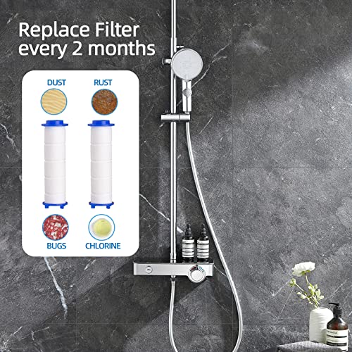 【Tubo della doccia + 2 filtri anticalcare】 Nella confezione abbiamo preparato 3 accessori: un tubo da 1,5 m, realizzato in acciaio inossidabile 304 di alta qualità che può impedire la rottura del tubo quando il tubo è attorcigliato o piegato. 2 pezzi di filtri in cotone PP sostituibili, che possono rimuovere efficacemente le impurità e ammorbidire l'acqua dura. Assicurano un'acqua della doccia morbida e sana e contribuiscono alla cura della pelle e dei capelli.
