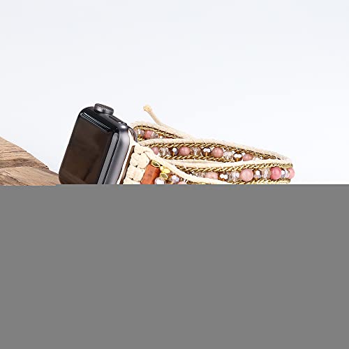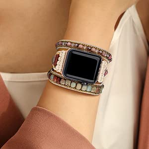 Regolazione: progettato per avvolgere fino a 3 volte, cinturino con perle per Apple Watch con 3 nodi regolabili, il nodo del cinturino può essere allentato e stretto per adattarsi al polso. Per utilizzare meglio la funzione iWatch, si prega di regolare il cinturino in modo corretto il polso, non troppo allentato.