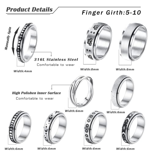 【ANELLI IN ACCIAIO INOSSIDABILE 316L】 Gli anelli spinner sono realizzati in acciaio inossidabile 316L di alta qualità, privi di piombo e nichel, anelli ipoallergenici e adatti a pelli sensibili. Anelli d'ansia in acciaio inossidabile robusti e durevoli, non facili da deformare e non sbiadiscono. Non far diventare la pelle verde. Può essere indossato più volte.