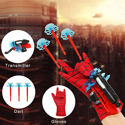Contenuto Della Confezione: riceverai 1 * launcher rosso, 3 * Freccette a ventosa, 1 * banda elastica, 1 *Guanto spider, la dimensione del guanto è adatta alla maggior parte dei bambini.