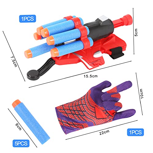 Contenuto Della Confezione: riceverai launcher blu*1, 5 * Freccette a testa tonda, 2 * banda elastica, 1 * Guanto spider, la dimensione del guanto è adatta alla maggior parte dei bambini.