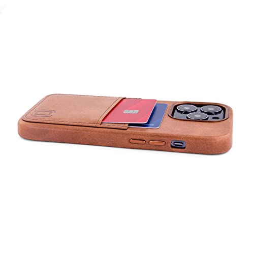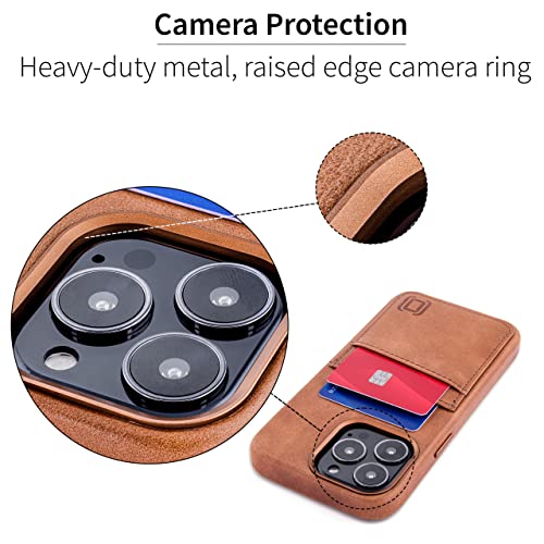Dockem Custodia per Carte in Vera Pelle per iPhone 13 Pro con Piastra Metallica Integrata per Montaggio Magnetico, Portafoglio Cucito con 2 Porta Carte, 6.1" Pro M2GL [Marrone Chiaro]